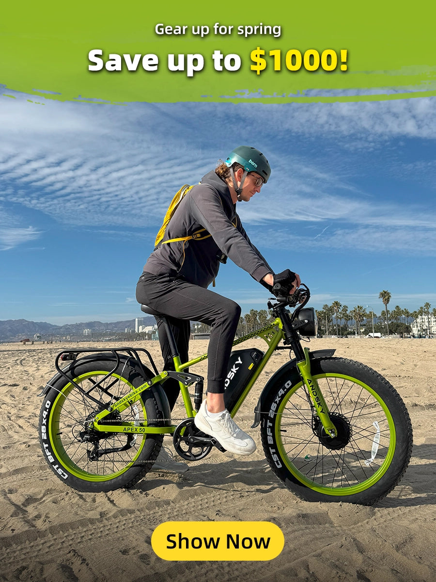 Geschwindigkeit und Effizienz: Pendler-eBikes, wie das Andsky E300, können je nach Klasse Geschwindigkeiten von bis zu 32-48 km/h erreichen. Für die meisten Stadtrouten ist ein Class-2 eBike, das auf 32 km/h begrenzt ist, perfekt. Wenn Ihr Arbeitsweg schnellere Stadtverkehrsbedingungen erfordert, könnte ein Class-3 eBike wie das Andsky S700, das Geschwindigkeiten von 48 km/h erreichen kann, besser geeignet sein.