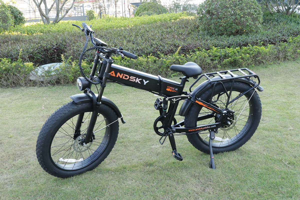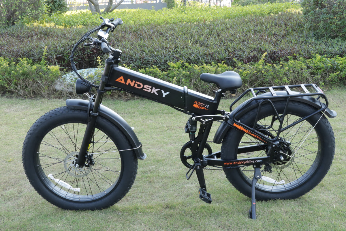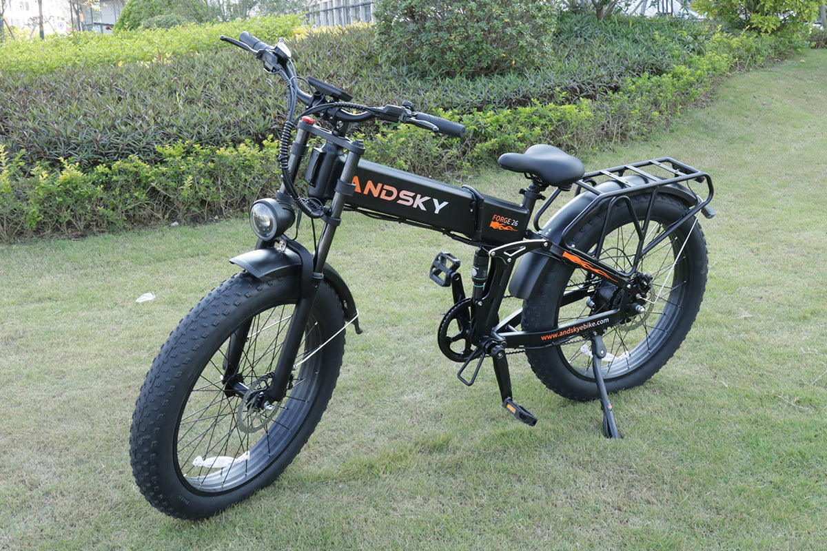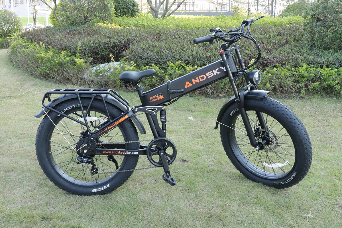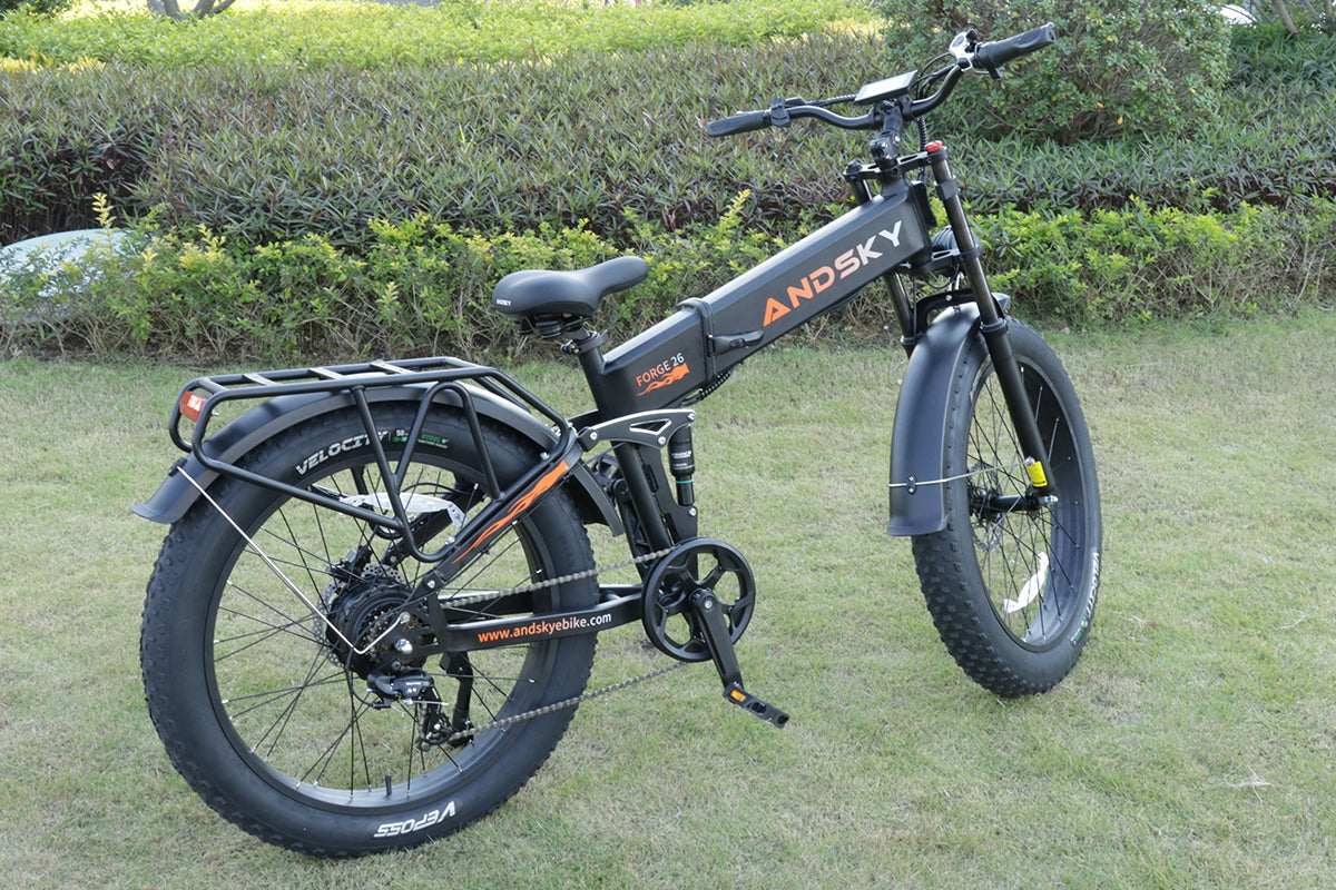 Forge 26 Foldable eBike with Torque & Cadence Assist, dual-crown lockable suspension, front/rear turn signals with display, Class 2 + Unlock Mode, 26×4.0 puncture-resistant fat tires, and adjustable handlebar for all riders.